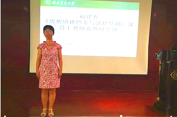 为深入学习贯彻习近平新时代中国特色社会主义思想和党的十九大精神,由中共福建省委教育工委、福建省教育厅主办,由福建省高校思政课教学指导委员会“基础”分教指委福建农林大学beat365亚洲版官方网站承办的福建省《思想道德修养与法律基础》课骨干教师新教材培训于2018年5月12-13日进行。我校选派思政部教师杨丽娥参加。