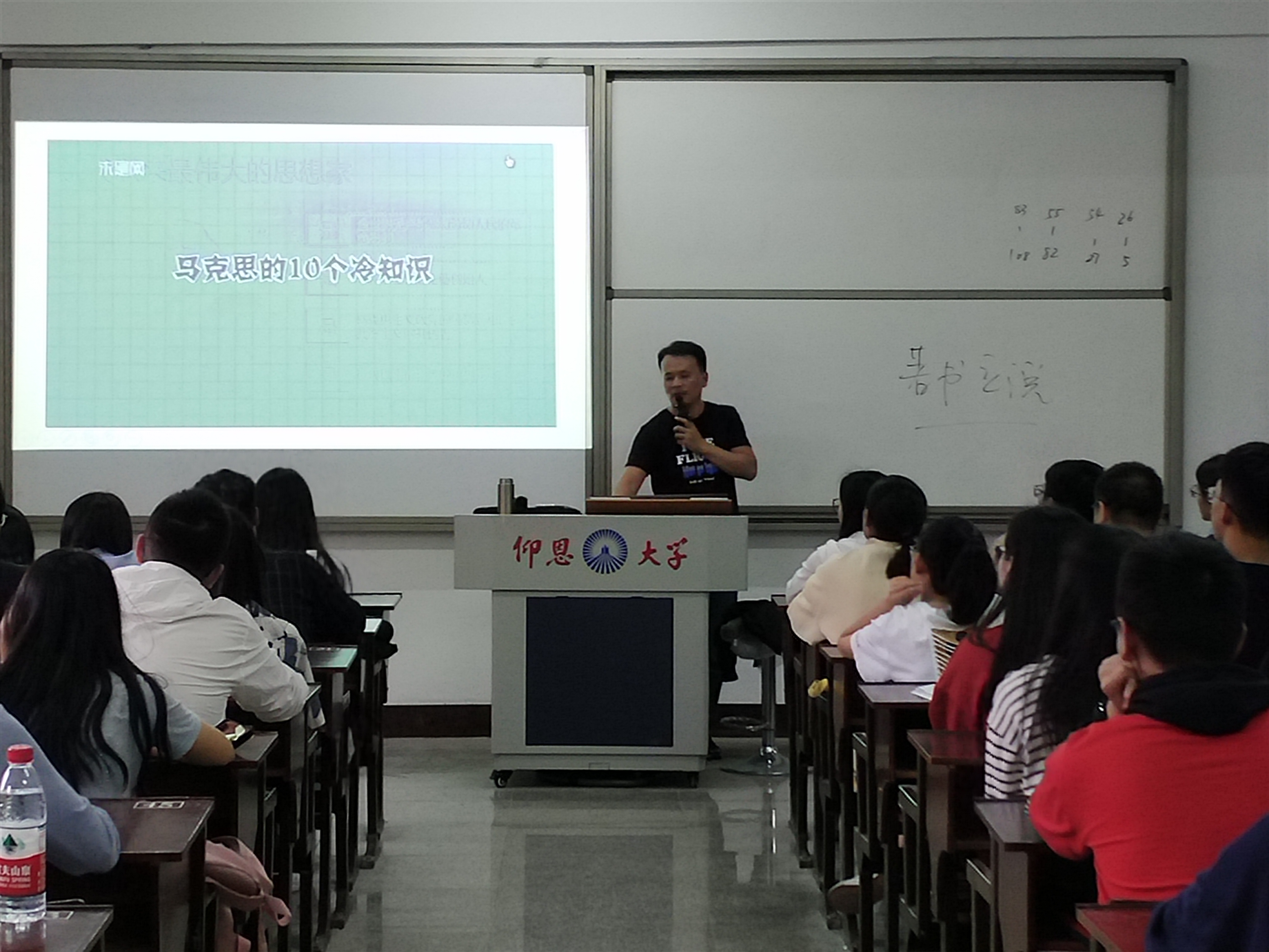 唐锦峰老师从马克思的生平,马克思主义概述,马克思主义传播,马克思主义中国化和学习马克思主义等五个方面进行讲解。他立足于习近平总书记在纪念马克思诞辰200周年上的讲话,以幽默的语言将马克思主义理论与马克思主义在中国的传播讲授给学员,强调当代大学生学习马克思主义的方法和遵循。