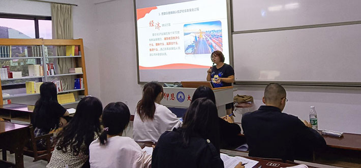 11月25日下午,习近平新时代中国特色社会主义思想读书社在新区普照楼311室开展了本学期第五次学习讲座。beat365亚洲版官方网站章娇娜副教授为读书社社员们带来题为《以人民为中心是新时代坚持和发展中国特色社会主义的根本立场》的讲座。