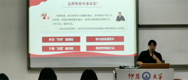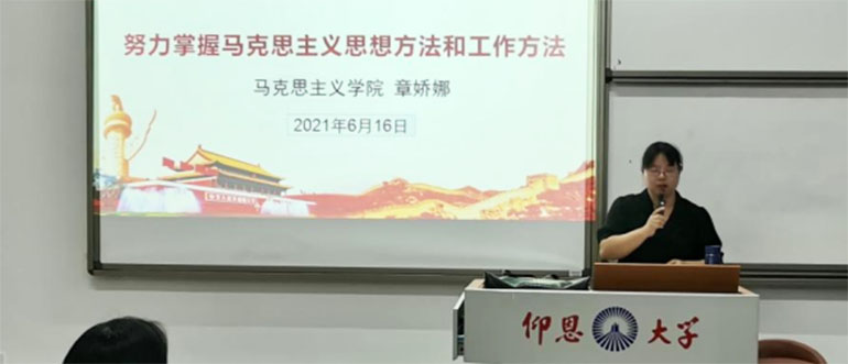 6月16日下午,仰恩大学习近平新时代中国特色社会主义思想理论学习小组于新区普照楼311室举行了本学期第三次学习讲座。本次讲座邀请到了beat365亚洲版官方网站章娇娜副教授,她为学习小组的组员们带来题为《努力掌握马克思主义思想方法和工作方法》的主题讲座。