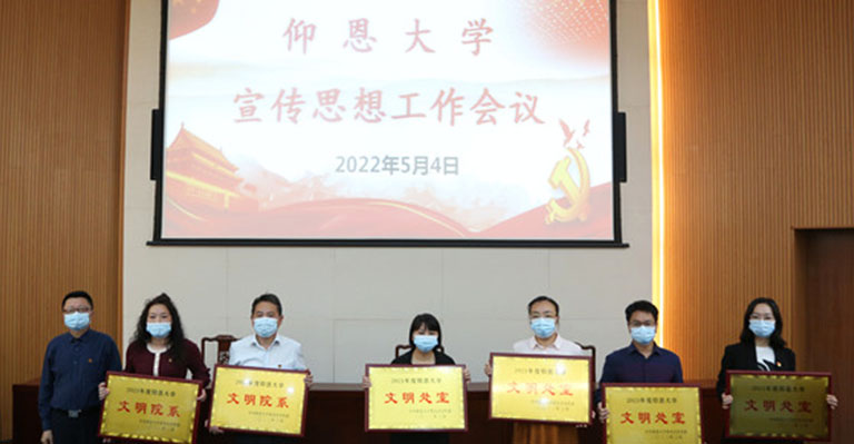 5月4日下午,仰恩大学2022年宣传思想工作会议在第一教学区多功能报告厅召开。会议由仰恩大学党委副书记程如平主持,大会主要包括四个议程:一、学校党委宣传部长陈章祧总结学校党委2021年宣传工作并布置2022年宣传工作要点;二、表彰学校2021年宣传工作先进单位和个人、学校文明院系和文明处室;三、学校先进宣传单位介绍工作经验;四、学校党委书记何宏舟针对宣传工作提出具体要求。