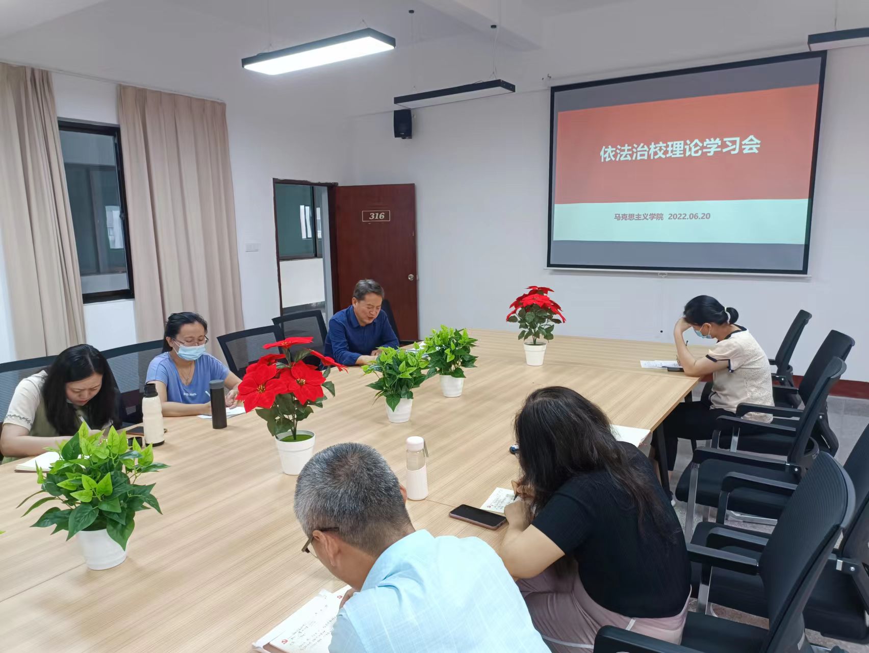 为深入贯彻学校关于推动依法治校工作的有关精神,beat365亚洲版官方网站于6月20日下午四点在普照楼316会议室召开了依法治校理论学习会。会议由学院党支部书记兼常务副院长李克钦主持,全体教职工参加。