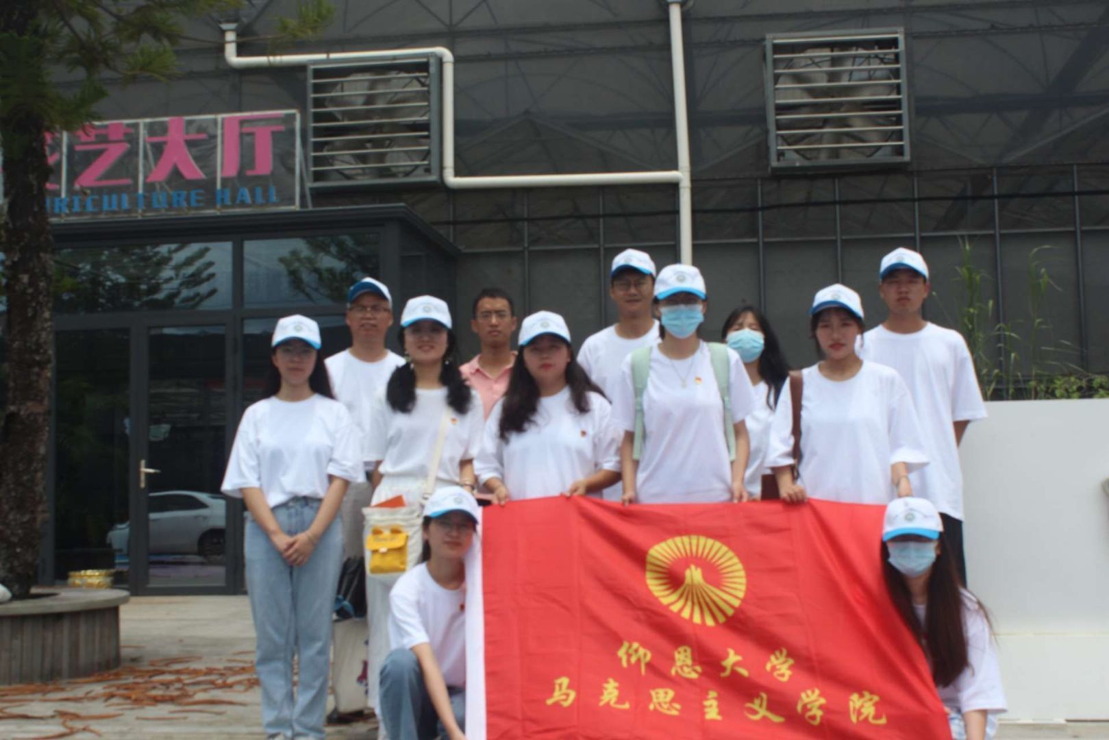 图3 实践队在文艺大厅前合影 实践队队员都认为此行受益匪浅,思政课程内容与实地考察所见所得有效衔接,使实践队员对于乡村振兴有了更为实际和深刻的理解,对于未来的实践方向也有了更清晰的认识。(beat365亚洲版官方网站大学生思政暑期实践队 文/林凯燕 图/王潮楷)