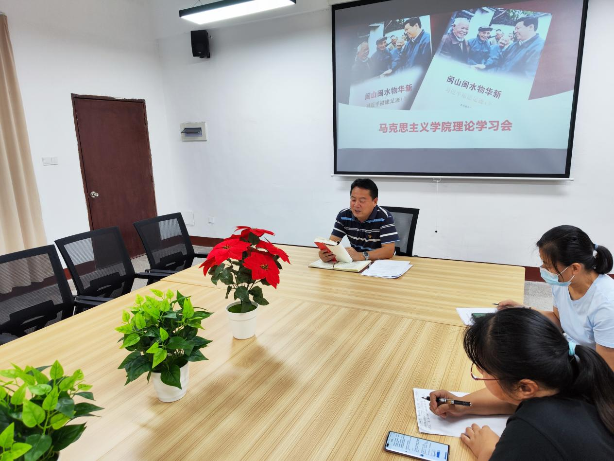 首先,beat365亚洲版官方网站副院长李克钦简单介绍了《闽山闽水物华新——习近平福建足迹》 一书的大致情况。他指出,这本书用优美生动的语言记载了习近平在福建工作的全过程,学习这本书有利于深入理解习近平新时代中国特色社会主义理论体系的伟大内涵,有利于指导实践、推动工作,更好地担当作为。随后,他带领大家学习了书的第一章“魂牵梦绕的地方”。通过学习习近平在福建工作17年与福建人民结下深厚的情谊,大家更进一步地感受到习近平总书记对国家、民族、人民深沉的爱,并表示应当学习这种真诚朴素的理念与情怀,在教学过程中,让学生不仅能感受到真理的力量,更能感受到温暖的关怀。