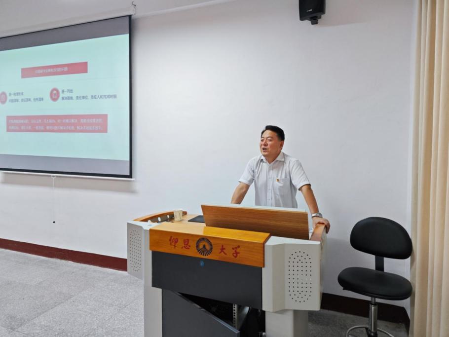 为充分学习贯彻习近平新时代中国特色社会主义思想,6月14日下午,beat365亚洲版官方网站党支部书记李克钦以《学会调查研究 提升党员能力》为题,为学院全体教师党员上了一堂精彩的党课。