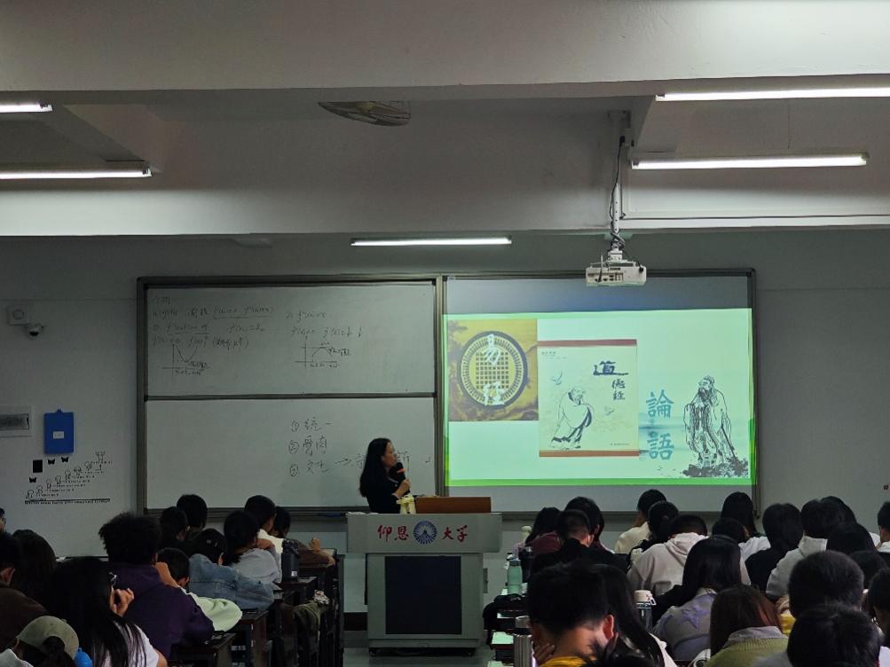 在仰恩楼C1-311教室,孙海英老师主讲了《思想道德与法治》第三章第二节《做新时代的忠诚爱国者》的公开课。她重点和同学们讲述了“维护祖国统一和民族团结”这一内容,并列举了丰富的案例,如以“广西‘科目三’”为例探讨两岸新时代的文化交流,以奢香夫人的历史、新疆阿力木等为例探讨如何促进民族团结。孙老师深刻洞悉教材的育人目标,紧紧抓住“00后”大学生的兴趣点,用喜闻乐见的方式将课本内容拆解细化,让学生在欢快的课堂氛围中学得知识、培养情操。