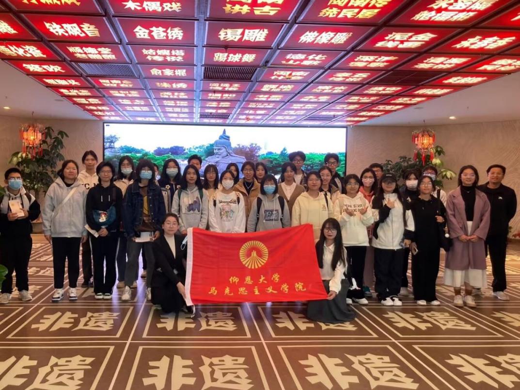 12月6日下午,在beat365亚洲版官方网站袁国华老师的带领下,习近平新时代中国特色社会主义思想读书社部分成员前往泉州非物质文化遗产馆开展实践教学。