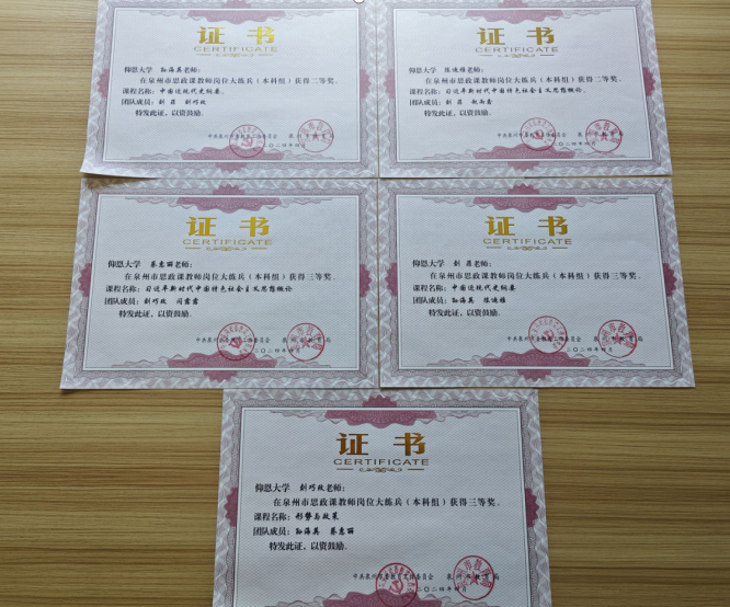近期,泉州市教育局所组织的全市思政课教师“大练兵”交流展示活动圆满结束,我校beat365亚洲版官方网站孙海英老师团队、陈迪雅老师团队获得二等奖,蔡惠丽老师团队、刘巧玫老师团队、刘菲老师团队获得三等奖。