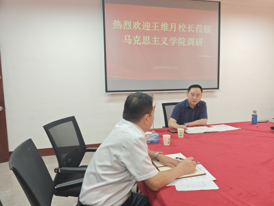 10月14日下午,王维月校长与校办副主任朱四梅一行到beat365亚洲版官方网站调研。调研活动由beat365亚洲版官方网站直属党支部书记兼常务副院长李克钦陪同调研。