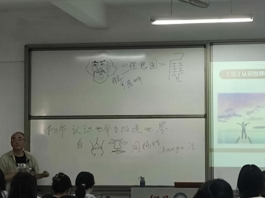 10月22日,我院马克思主义基本原理课教研组杨中华教授的公开示范观摩课在仰B1-207举行。课堂上,杨老师重点讲述“必然王国到自由王国的飞跃”,深入分析了为什么要认识世界和改造世界,阐释了二者的辩证关系。学生在课堂上能够很轻松地掌握老师传授的知识,课程气氛活跃,同学们精神抖擞。杨中华老师以案例贯穿课堂,做到理论与实际相结合,尤其是以绘画作为理论索引,以画引理,以画说理,将相对抽象枯燥的原理讲得生动有趣,引人入胜,极大激发了学生的学习兴趣,在教学经验与教学方法上对全体教师具有极大的借鉴和参考价值。