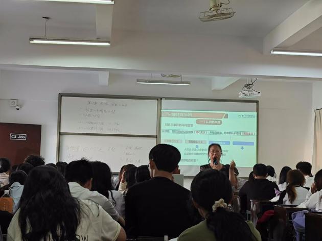 10月25日,我院思想道德与法治课教研组副教授孙海英老师的公开示范观摩课在仰A3-105举行。课堂上,孙老师以认知心理学与行为心理学为切入,深度讲述“人生要务实”的问题,多层次剖析为什么务实难。她从大学生的认知思维特点和认知思维误区着手,引入章泽天的案例,分析何为务实,如何做到务实,凸显务实的关键在于认清现实、脚踏实地。这不仅是一堂思政课,也是一堂大学生开展自我追寻、自我认识的人生课堂。孙老师的课堂充分体现了跨学科知识体系在教学中的重要价值与深度应用,整个课程内容充实,所选取的案例典型性与现实性兼具,引起了学生的共鸣,学生互动积极性高,课堂氛围非常融洽。