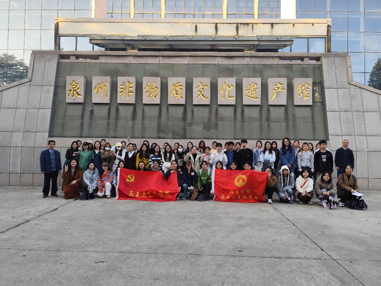 文化自信是更基础、更广泛、更深厚的自信,是一个国家、一个民族发展中最基本、最深沉、最持久的力量。11月27日,为增进学生对华侨爱国心、创业史的了解,真切体验非物质文化遗产的独特魅力,宋家本、蔡惠丽、胡友仁等教师和习近平新时代中国特色社会主义思想概论课程的70名学生前往泉州市华侨历史博物馆和泉州非物质文化遗产馆开展实践教学活动。