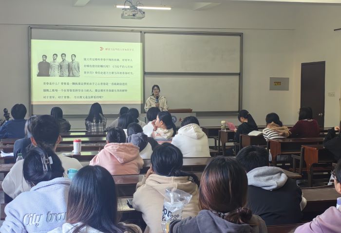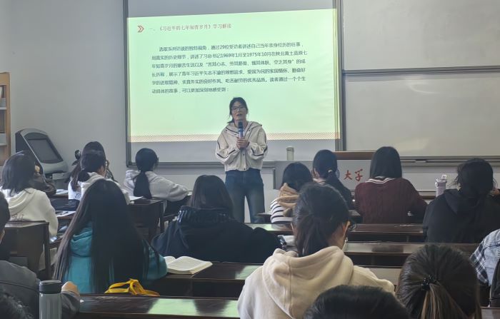 讲座伊始,王瑞芳老师通过丰富的图片、视频等资料让同学们直观感受习近平总书记七年知青岁月的历史场景。随后,王瑞芳老师以“从浓郁革命氛围中成长”、“在人民群众中成长”、“在长期实践中成长”、“在艰难环境、曲折经历中成长”四个维度,让同学们更加深刻地了解习近平总书记青年时代在艰苦环境中扎根基层、服务群众的朴素情怀以及为人民办实事、勇于担当的品格。会议最后,读书社成员就《习近平的七年知青岁月》的学习分享了自己的心得体会。