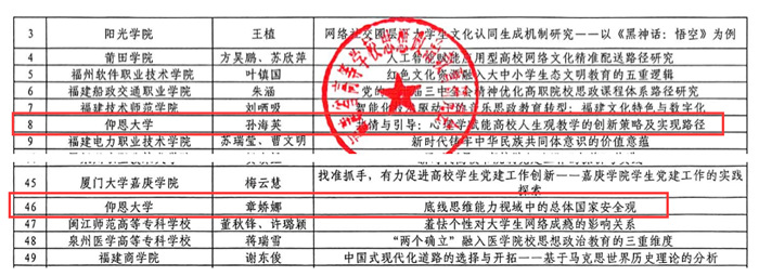 beat365亚洲版官方网站根据《关于征集福建省高等学校思想政治教育研究会2024年优秀论文的通知》(闽高思研〔2024〕7号)要求,广泛动员教师撰写论文,并积极推荐优秀论文参加本次评选。据悉,本次论文评选工作经评审组专家匿名评审,共评选出一等奖14篇,二等奖29篇,三等奖49篇,优秀奖52篇。