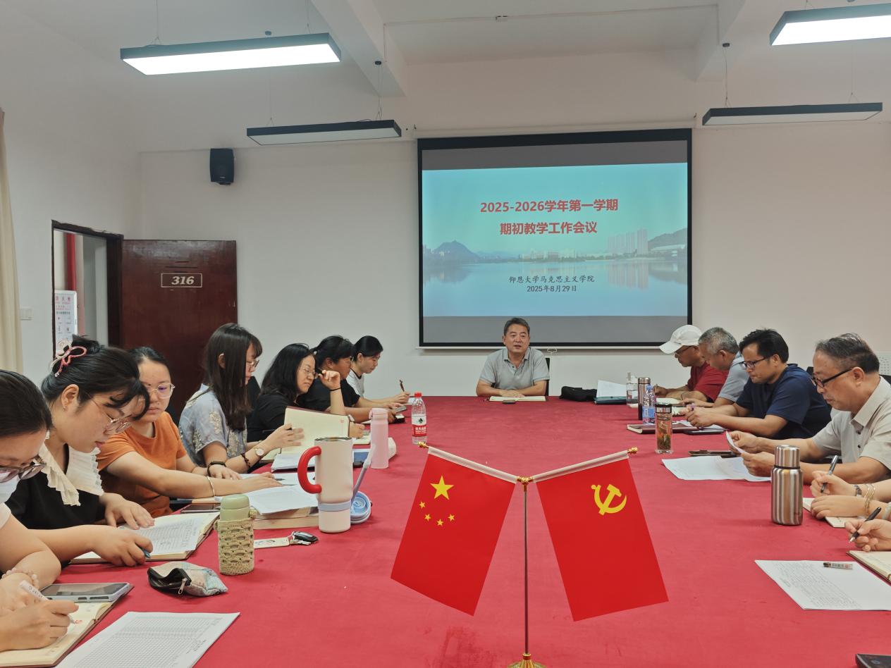 会上,李克钦副院长就学期初多项重点工作作出具体部署,包括期初教学安排、教师课堂教学规范以及新入职教师介绍等事项。他强调,要扎实做好开学各项准备工作,确保教学秩序平稳有序,不断提升教学质量。会议还对《形势与政策》课程的教学内容进行了讨论,促进了新学期教师之间的交流与融合。