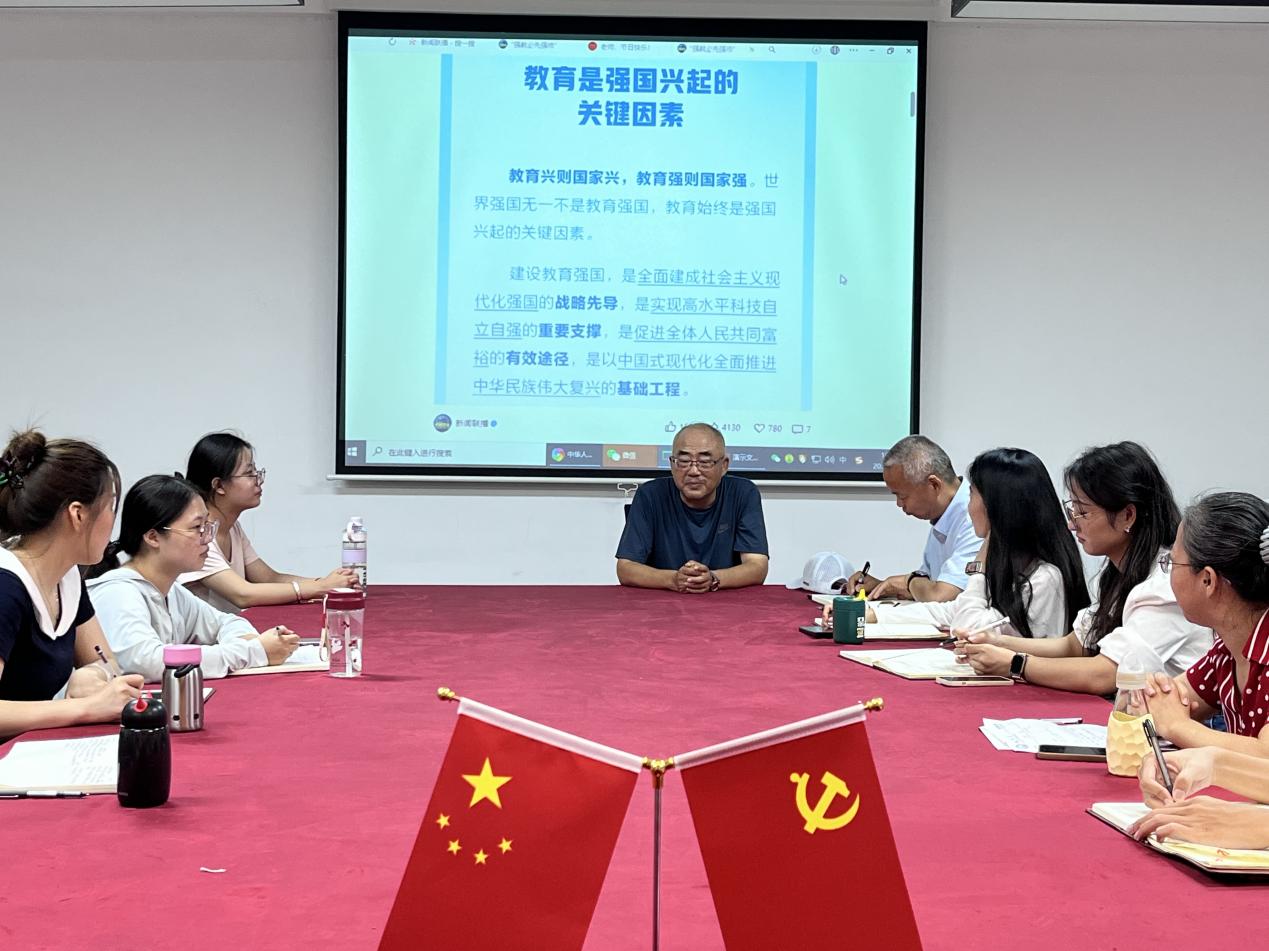 会议伊始,胡友仁带领全体与会教师深入学习了习近平总书记与教育相关讲话,重点强调了“教育是强国兴起的关键因素”、“强教必先强师”以及“做好‘经师’,成为‘人师’”等重要观点,进一步明确了教师在教育强国建设中的重要地位和作用。通过学习,教师们深刻领会了教育家精神的内涵,为后续的师德教育活动奠定了坚实的思想基础。