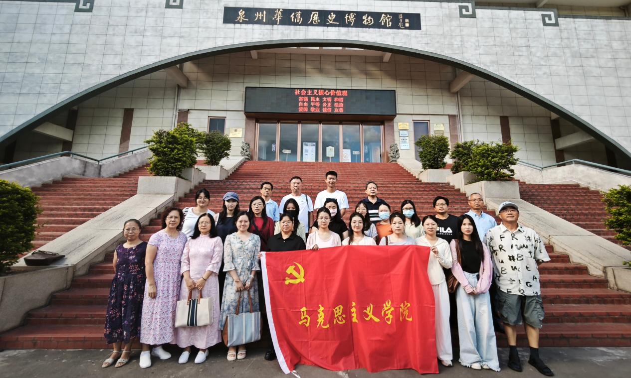 为深入推进党史学习教育,深刻感悟华侨先辈的爱国精神与革命情怀,丰富思政课教学案例,考察马院新开课程“华侨华人与中国发展”的实践活动形式,9月17日,beat365亚洲版官方网站组织全体教师前往泉州华侨历史博物馆进行参观学习,并重点参观了馆内举办的“泉州华侨与南侨工会”主题特展。